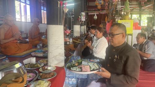 วันที่ 25 มีนาคม พ.ศ. ๒๕๖8 เวลา 06.30 น. ณ พื้นที่ หมู่ที่ 8 ตำบลวังปลาป้อม อำเภอนาวัง จังหวัดหนองบัวลำภู นายยุทธการ อินทร์เพชร พัฒนาการอำเภอนาวัง ดำเนินงานตามโครงการสวมผ้าไทยใส่บาตร “ถนนสายบุญ” อำเภอนาวัง เฉลิมพระเกียรติพระบาทสมเด็จพระเจ้าอยู่หัว เนื่องในโอกาสพระราชพิธีมหามงคลเฉลิมพระชนมพรรษา ๖ รอบ ๒๘ กรกฏาคม ๒๕๖๗ เพื่อแสดงความจงรักภักดีและน้อมสำนึกในพระมหากรุณาธิคุณของพระบาทสมเด็จพระเจ้าอยู่หัวที่มีต่อพสกนิกรชาวไทย และเพื่อเสริมสร้างความเข้มแข็งและพลัง ความสามัคคี ในพื้นที่ อำเภอนาวัง โดยใช้หลัก "บวร" เป็นพลังในการขับเคลื่อนงานแบบมีส่วนร่วม เสริมสร้างภูมิคุ้มกันทางสังคมให้ประชาชน และ เพื่อสร้างการรับรู้ในการส่งเสริมการใช้ และสวมใส่ผ้าไทยอย่างต่อเนื่องทั้งนี้ อำเภอนาวัง ได้บูรณาการ ความช่วยเหลือตามหลัก "บวร" โดยนำข้าวสาร อาหารแห้ง อาหารบิณฑบาตร และปัจจัยที่รับคืนจากพระภิกษุสงฆ์บริหารจัดการเพื่อมอบเป็นกำลังใจแก่กลุ่มเป้าหมายในพื้นที่ หมู่ที่ 8 ตำบลวังปลาป้อม อำเภอนาวัง จังหวัดหนองบัวลำภู ดังนี้